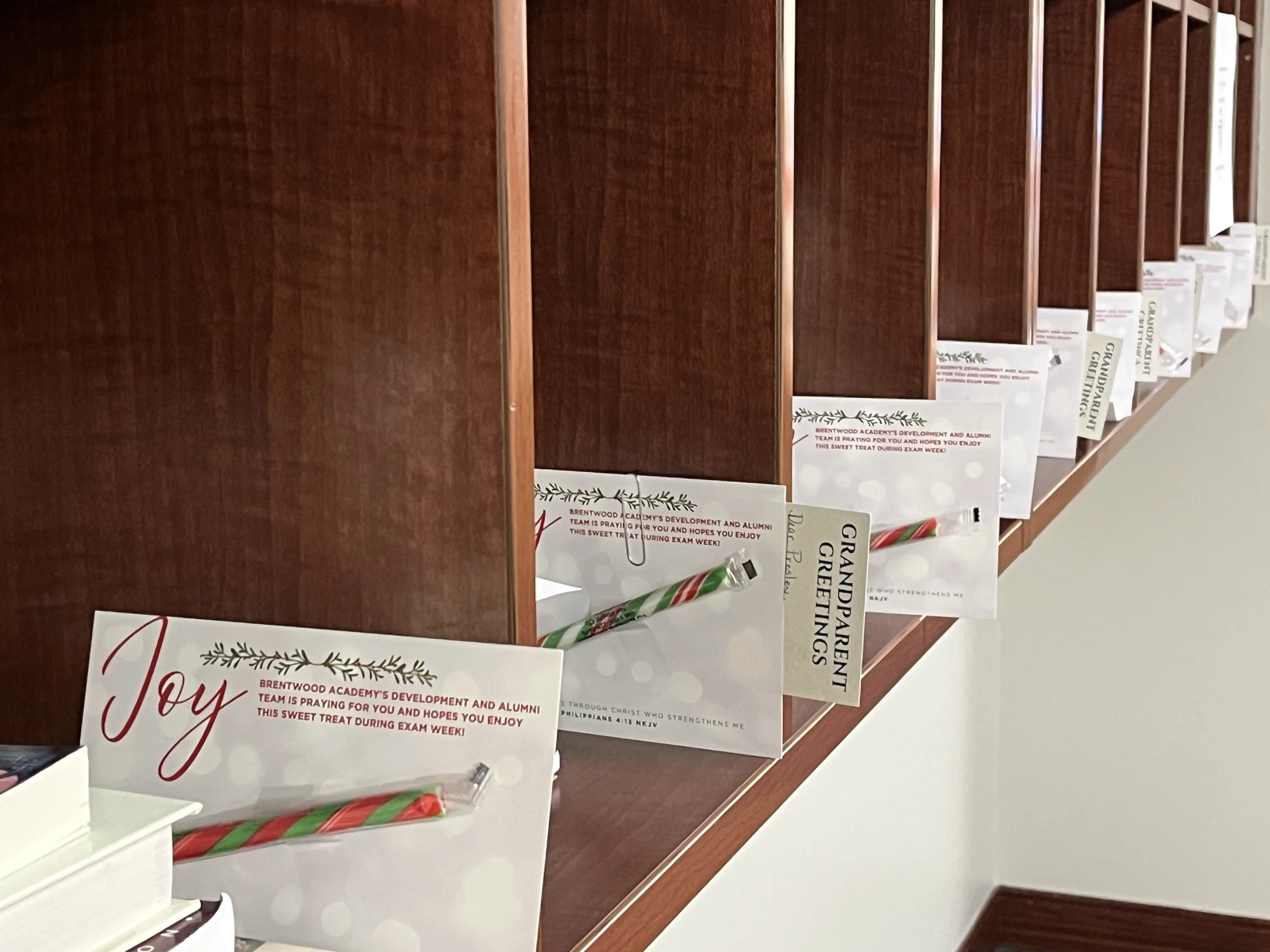 We have a much-loved tradition of inviting our BA Grandparents to write notes of encouragement to their students as they prepare for their first-semester exams. A letter with a pre-printed note card(s) and a postage-paid return envelope will be sent to grandparents in October.